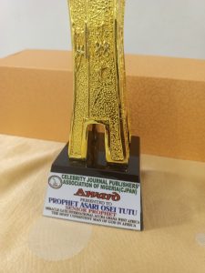He will be decorated at the Celebrity journal Publisher Associations CJPAN in Lagos Nigeria, Details soon