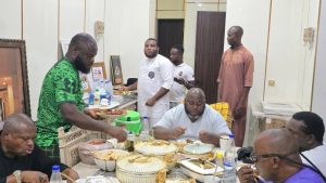 Anyone familiar with the generosity associated with Ramadan hospitality will recognize the scene immediately. Long before the fast is broken, the dining area in the Obuama residence begins to fill. Plates and bowls appear steadily—dates, fruits, steaming rice dishes, richly spiced meats, soups, grilled fish, and local delicacies that reflect both Kalabari tradition and northern culinary influences