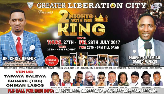 The chief host is the generational prophet Dr Chris Okafor, senior prophet