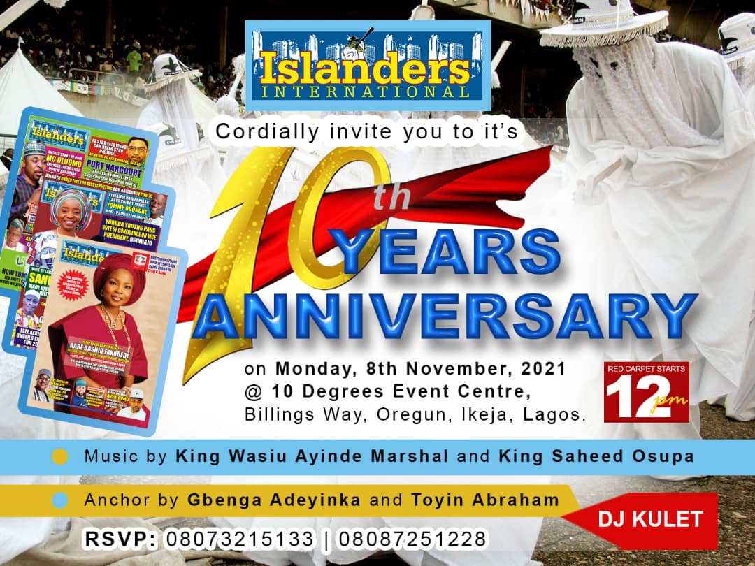 Ola Muhammed, Publisher of Islanders International Magazine has concluded plans to celebrate the 10th anniversary of the all-coloured sort sell and online magazine.