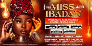 The Aderonke Omo Dairo Foundation (AOD) is thrilled to announce its highly anticipated Miss Ibadan grand finale event, set to take place on Saturday, 3 August 2024 at Sophia Event Place, Joke Plaza, beside Trans Amusement Park, Bodija Ibadan.