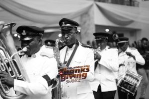 The Nigeria Police Force Band alongside the Nigeria Army band Perform to the delight of every one at the service.