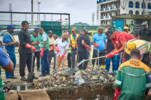 Akodu who was accompanied by the Permanent Secretary, Office of Environmental Services, Omobolaji Gaji and Permanent Secretary, Office of Drainage Services, Engr Mahamood Adegbite and Managing Director of LAWMA, Dr Muyiwa Gbadegesin had earlier engaged in cleaning the drainage on Agege Motor Road by desilting it, while a waste truck carted it away.