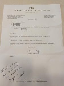 According to a letter from Frank, Juengel & Radefeld and signed by Matthew A. Radefeld, the prosecutor has dismissed the federal charges in New Mexico against Ogiozee. Also included in the letter is a copy of the Motion to Dismiss.
